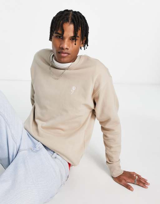 New Look rose embroidered sweatshirt in stone