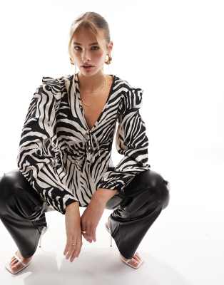 New Look ruffle long sleeve blouse in zebra print