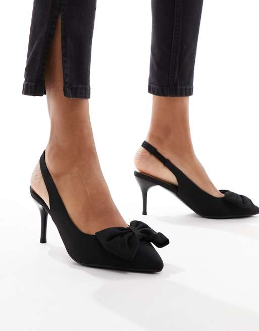 New look satin bow slingback heeled shoe in black