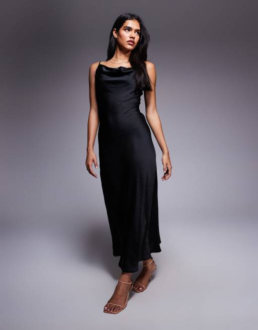 New Look satin cowl neck midi dress in black