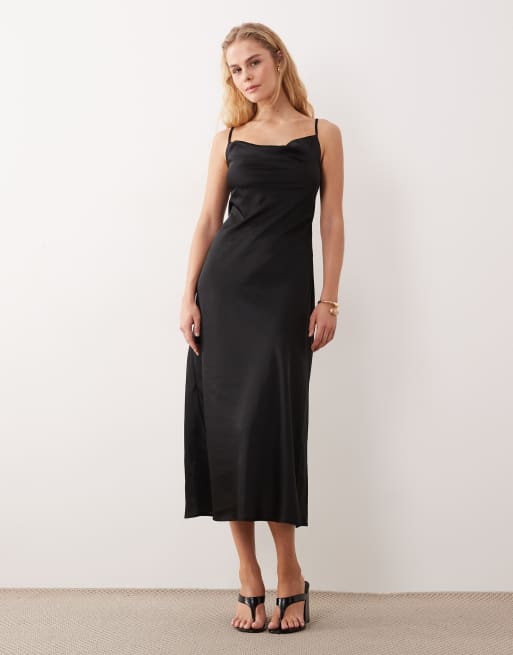 New Look satin cowl neck midi dress in black