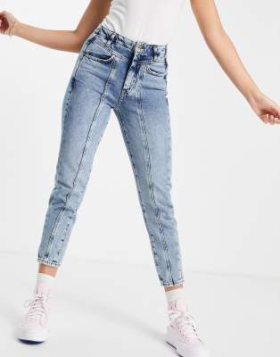New Look seam detail mom jean in acid wash blue