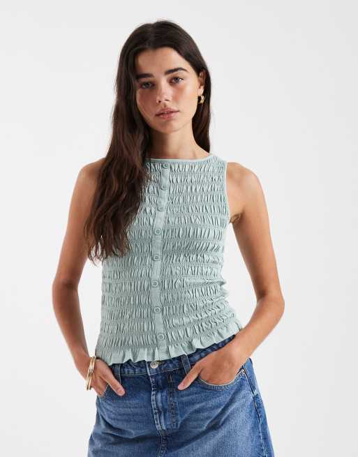 New Look shirred button through tank in light green