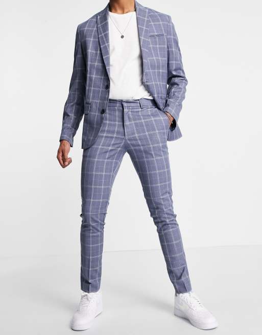 New Look skinny check suit trouser in blue