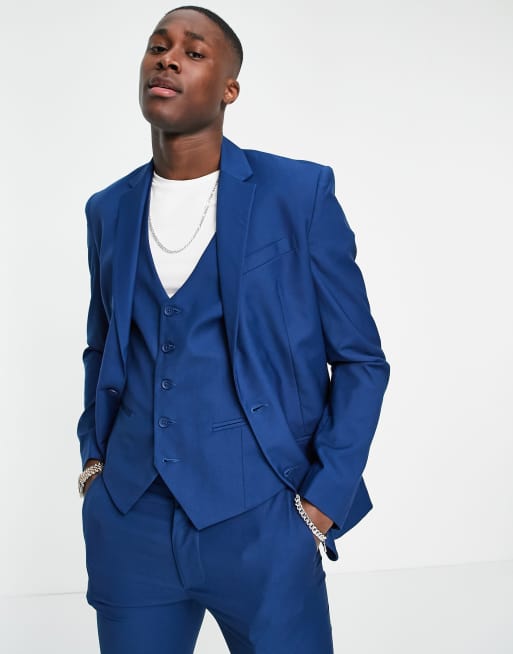 New Look skinny suit jacket in bright blue