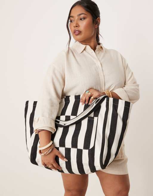 New Look slouchy tote bag in black stripe