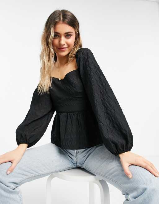 New Look square neck peplum blouse in black