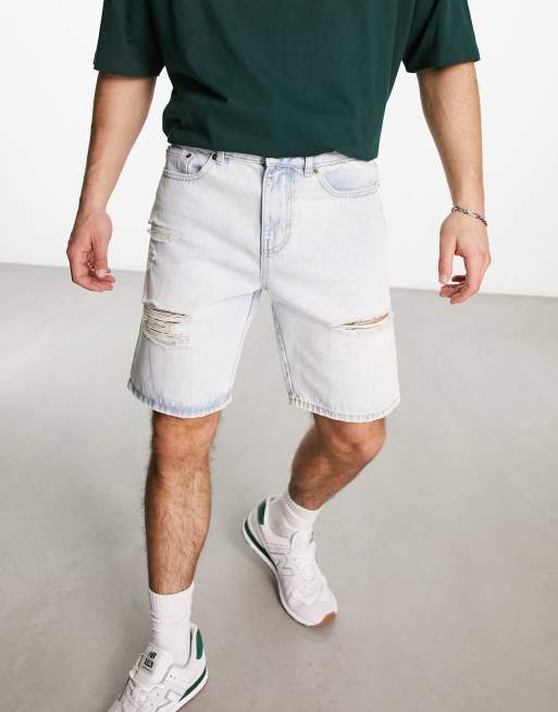 New Look straight fit denim shorts with raw hem in light blue