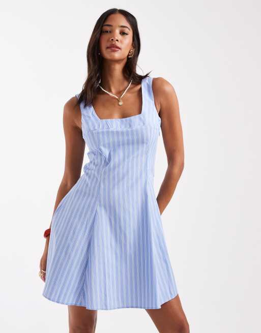 New Look stripe poplin mini dress in blue