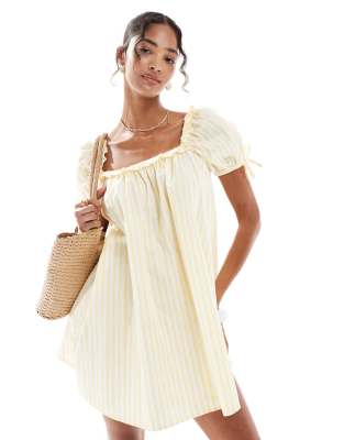 New Look stripe square neck poplin mini dress in yellow