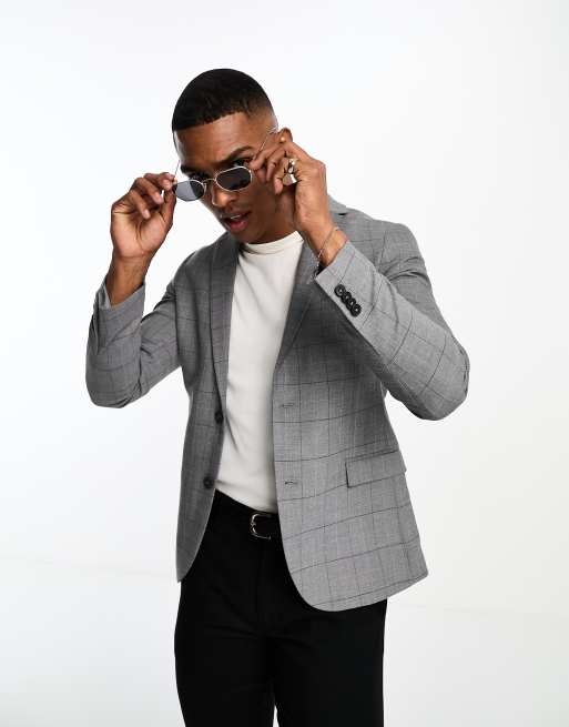 New Look super skinny suit jacket in grey check
