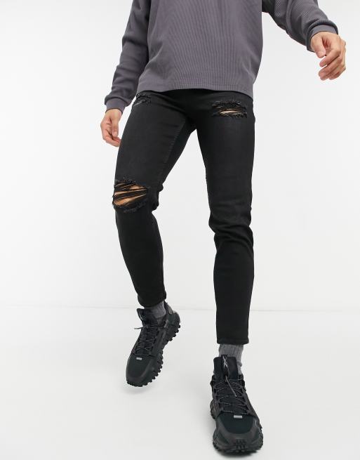 New Look tapered jeans with rips in black