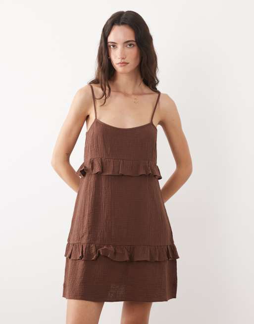 New Look tiered mini sundress in chocolate brown