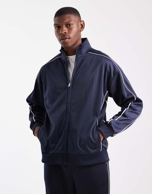 New Look tricot zip through tracksuit jacket in navy