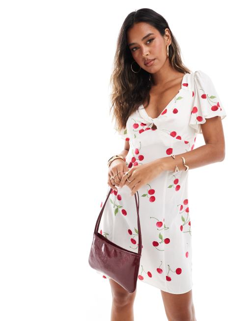 New Look twist front mini dress in cherry print