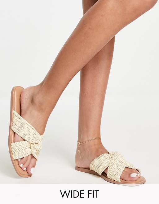 New Look Wide Fit raffia knotted mule sandals in off white