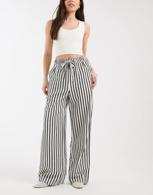 New Look wide leg stripe trousers in blue