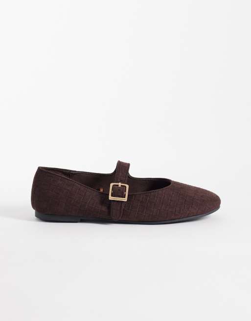New Look woven mary jane ballet flats in brown