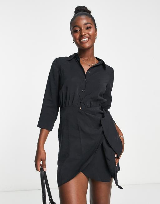 New Look wrap front shirt dress in black