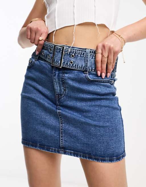 New Look Y2K belted mini skirt in blue