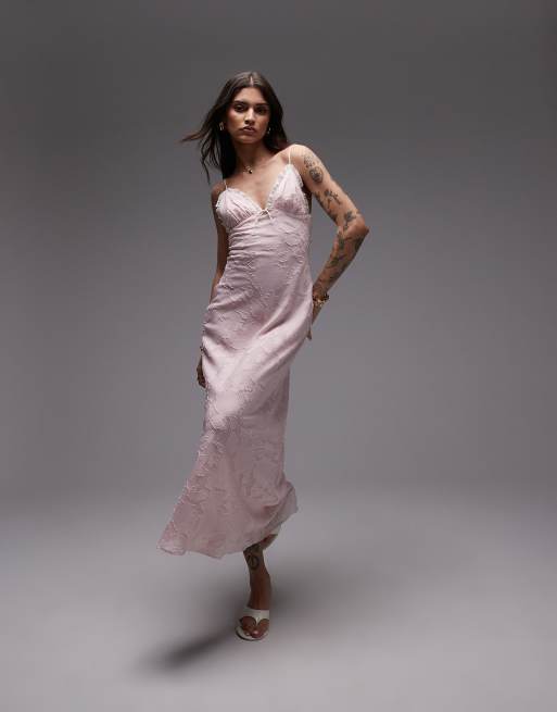 Nia camille flocked midaxi dress in blush pink