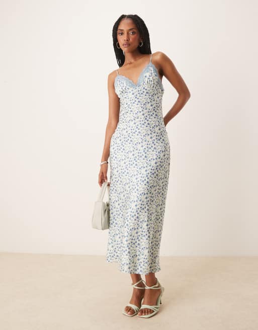Nia jasmine ditsy print satin midaxi cami dress in light blue