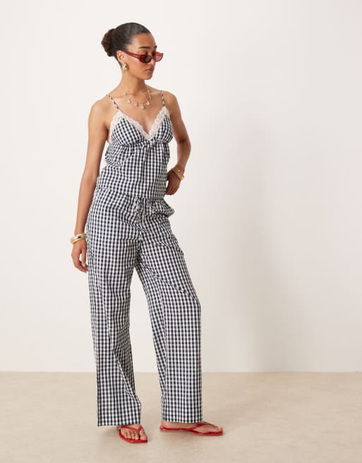 Nia khonny gingham wide leg trousers in navy
