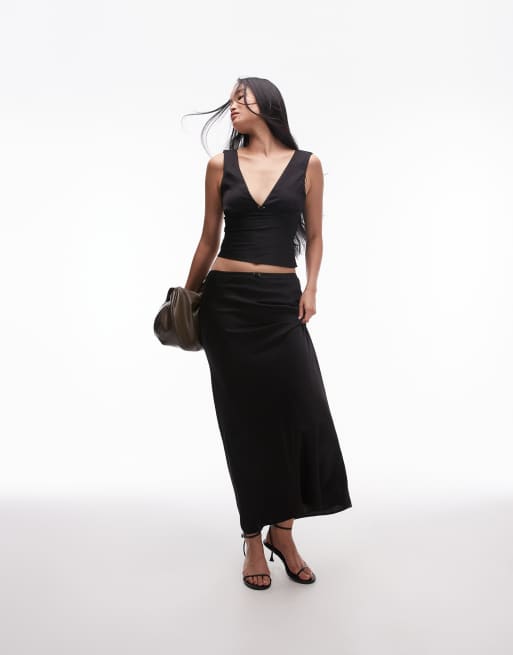 Nia ravello rosette detail satin maxi skirt co-ord in black