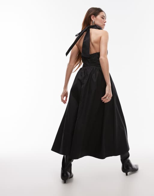 Nia rio corset detail poplin midi dress in black