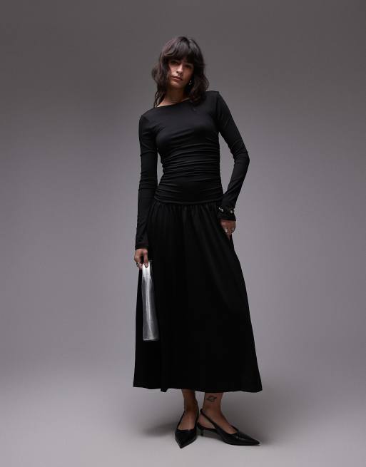 Nia sera slinky long sleeve ruched midaxi dress in black