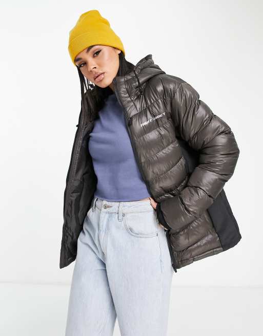Night Addict oversized padded jacket with hood in chocolate brown