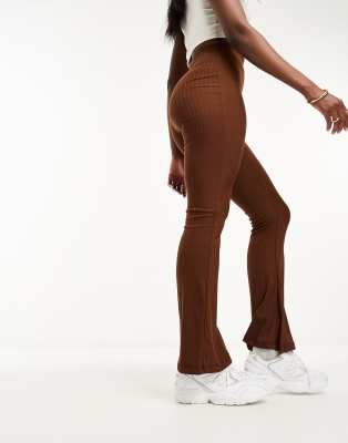 Night Addict ribbed flared leggings in chocolate brown
