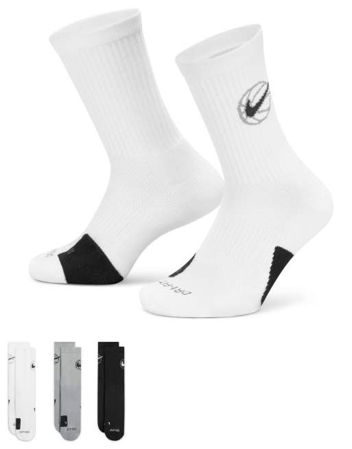 Nike Basketball Everyday 3 pack crew socks in white, black & grey
