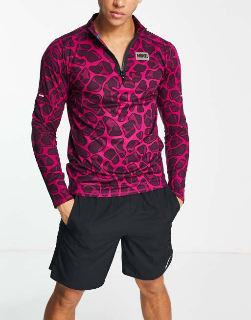 Nike Running DYE Element Dri-FIT 1/4 zip printed top in pink
