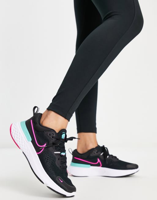 Nike Running React Miler 2 trainers in black and blue