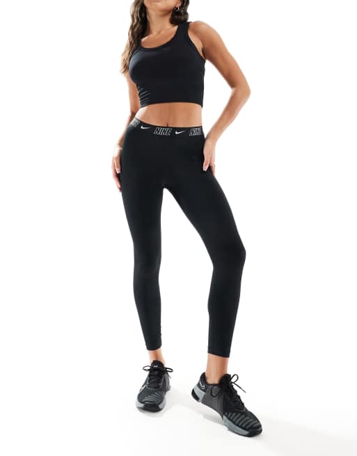 Nike Swimming Fusion Logo Tape high waist swim leggings in black