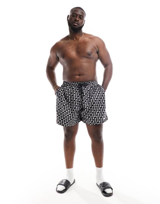 Nike Swimming Plus Swoosh Link 9 inch volley swim shorts in black all over print