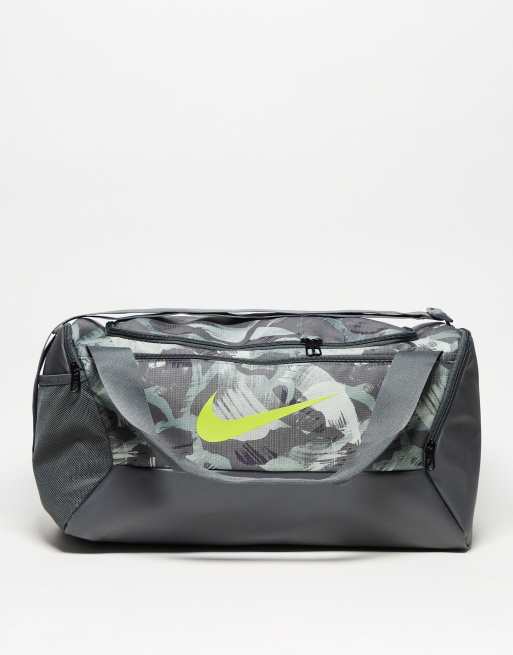 Nike Training Brasilia 9.5 camo duffel bag in grey
