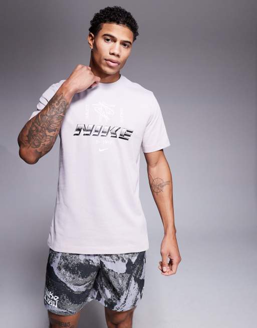 Nike Training Dri-FIT metallic graphic logo t-shirt in light purple