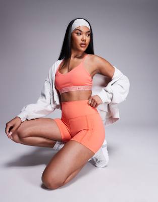 Nike Training Gym Life Swoosh Indy Dri-FIT light support sports bra in coral