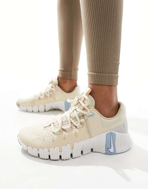 Nike Training Metcon 5 trainers in beige and blue