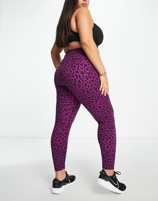 Nike Training Plus Leopard One Dri-FIT high rise printed leggings in purple