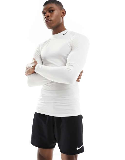 Nike Training Pro tight longsleeve mock neck t-shirt in white