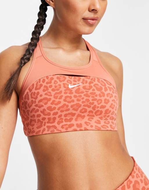 Nike Training Swoosh Dri-FIT leopard print cross back medium support sports bra in pink