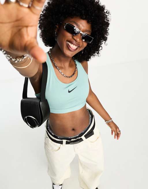Nike Training Swoosh Dri-Fit medium support sports bra in blue