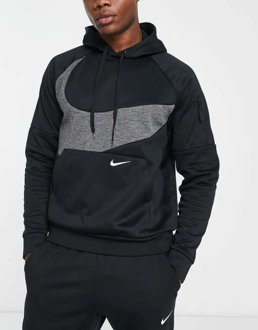 Nike Training Therma-FIT large Swoosh hoodie in black