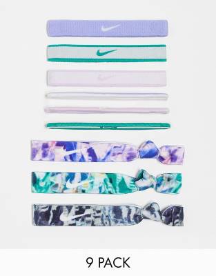 Nike 9 pack mixed hairbands in purple