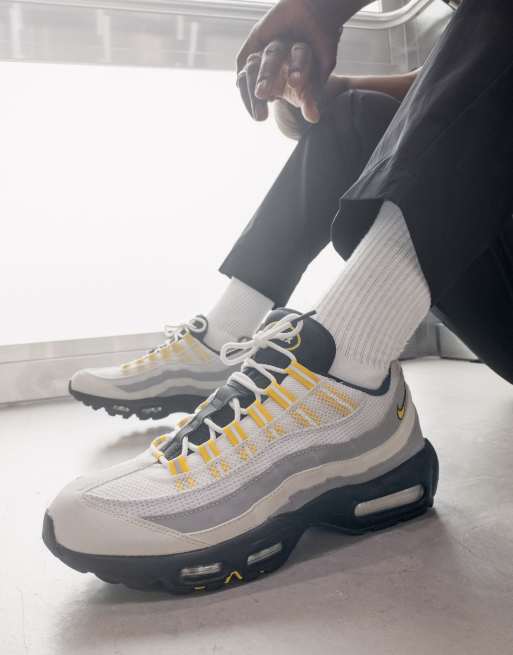 Nike Air Max 95 trainers in white and tour yellow