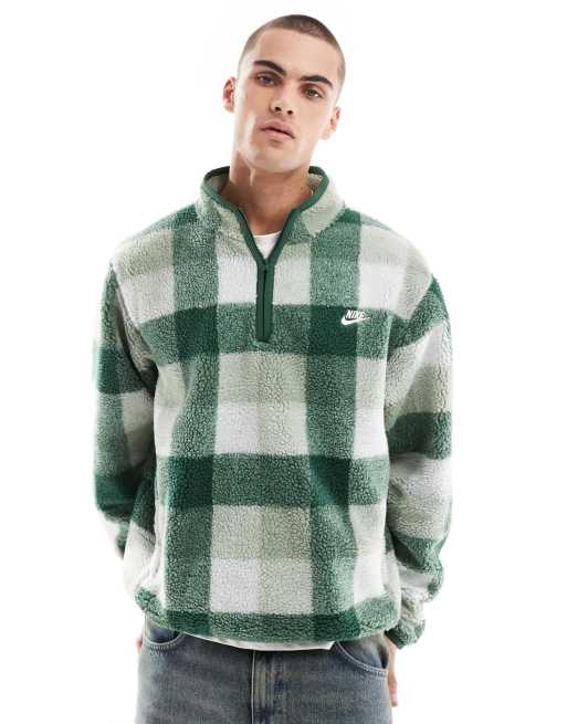 Nike Club half zip fleece in green check