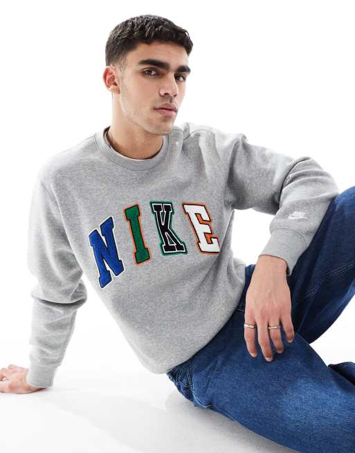Nike Club letters logo crew neck sweatshirt in grey